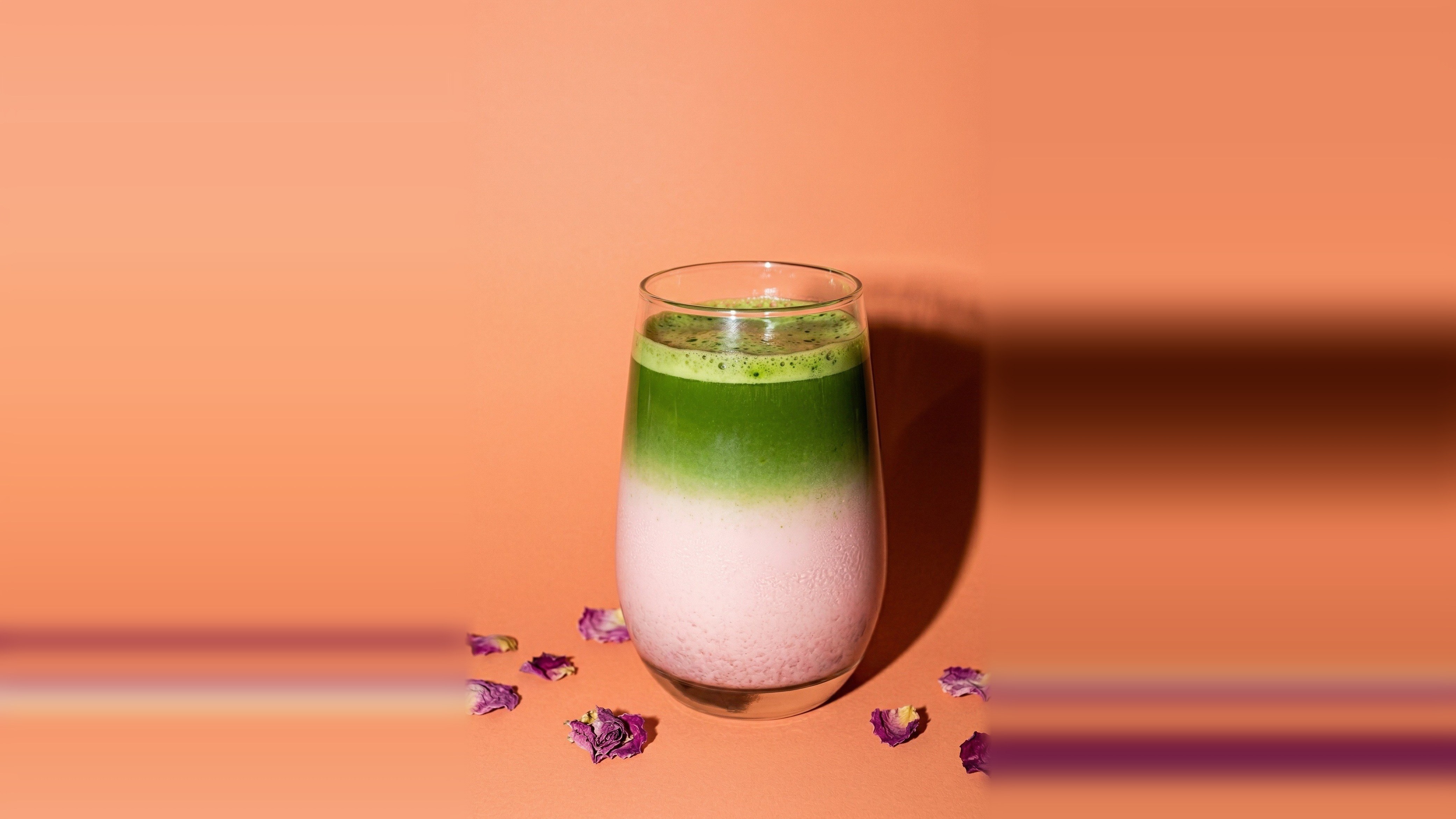 Floral and fruity — strawberry shroomé meets a splash of rose water for an elevated matcha moment.